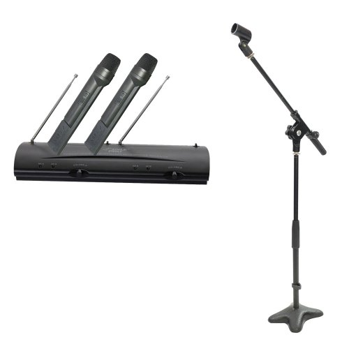 Here are some of the great features of Pyle Mic and Stand Package - PDWM2100 Professional Dual VHF Wireless Handheld Microphone System - PMKS7 Compact Base Microphone Stand