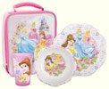 Disney , Disney Princess 3 Piece Set with Lunch Bag Take your favorite Disney Princesses with you everywhere with this Complete Mealtime Set in One Convenient Package--the Perfect Way To Make Mealtime Fun. Includes: Lunch Bag, Plate, Bowl and Tumbler. Great gift idea! Product Features: Durable materials last wash after wash Packaging is 100% PVC free Food safe Dishwasher safe Stain resistant Do not microwave Recommended for children ages 3+ Plate - 8"/20.3cm Bowl - 5.5"/14cm Tumbler capacity - 9oz/266ml Lunch Bag is 10in x 8 1/2in x 3 1/2in Food Safe Double-stitched seams and durable materials Padded handles for extra comfort Do Not Microwave Durable materials easily wipe clean